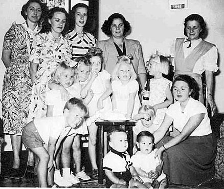 The one in the striped dress is my Mom and Thelma is on her left. I have